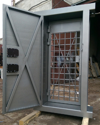 Каркас двери выполнен из швеллера толщиной 5 мм. Первая дверь из решетки, диаметр прутка 16 мм. Вторая дверь из металлического